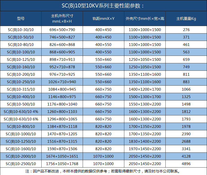 SCB10干式變壓器尺寸如下:
