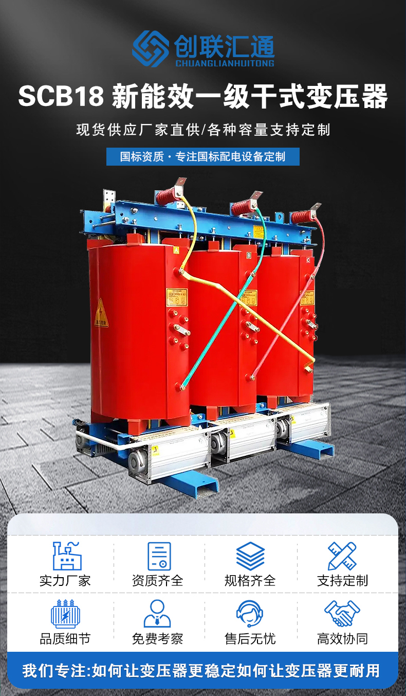 SCB18變壓器滿足一級能效,相較于傳統的SCB12干式變壓器,空載損耗降低30%,負載損耗降低10%左右,因此SCB18型變壓器最大的優勢便是節能。